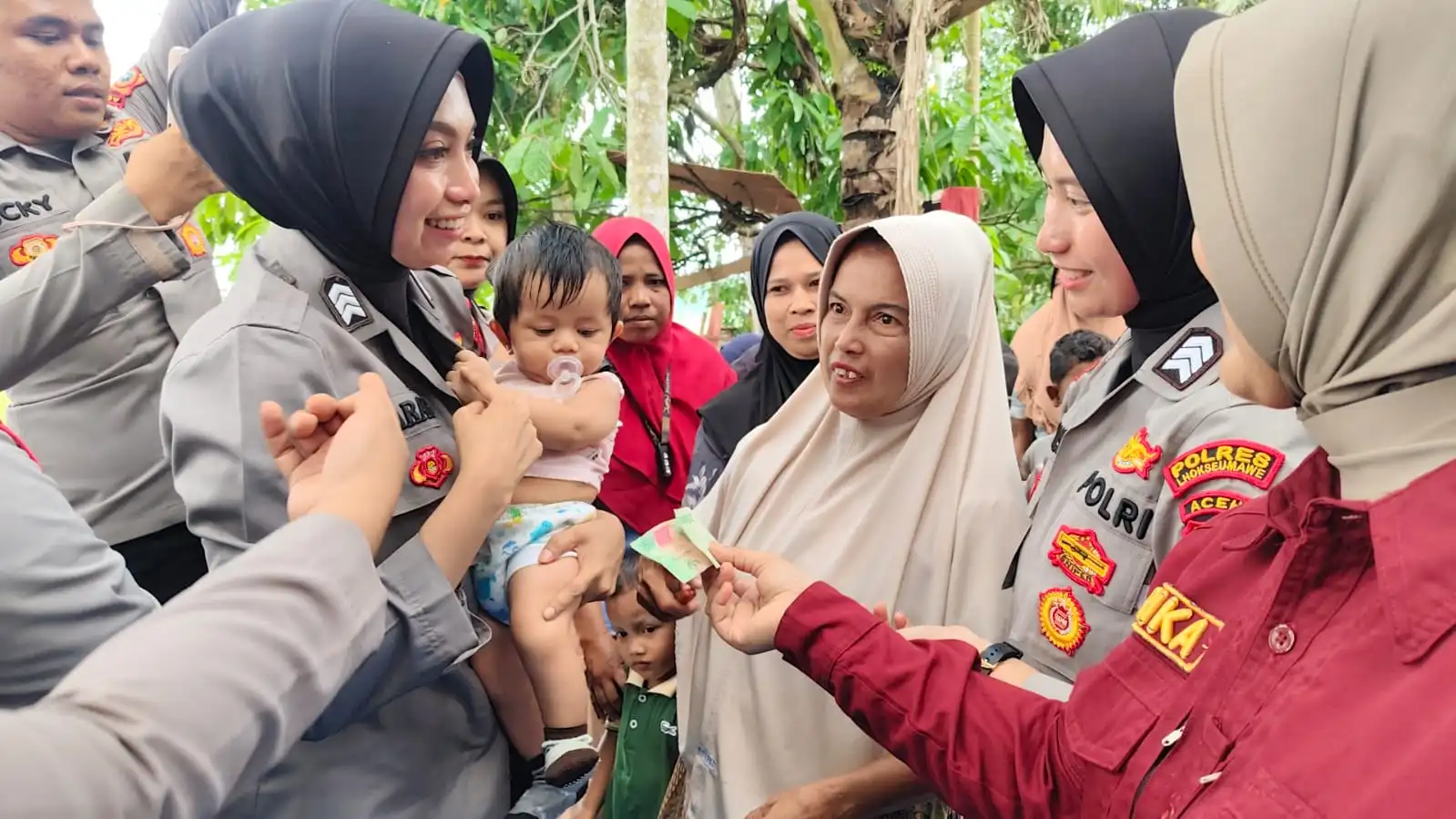Selain pendampingan psikologis, Tim SDM Polres Lhokseumawe juga menyalurkan bantuan berupa tas sekolah, buku, alat tulis, popok bayi, beras, mi instan, air mineral, serta jilbab kepada para pengungsi lansia sebagai wujud kepedulian sosial kepada masyarakat terdampak banjir.